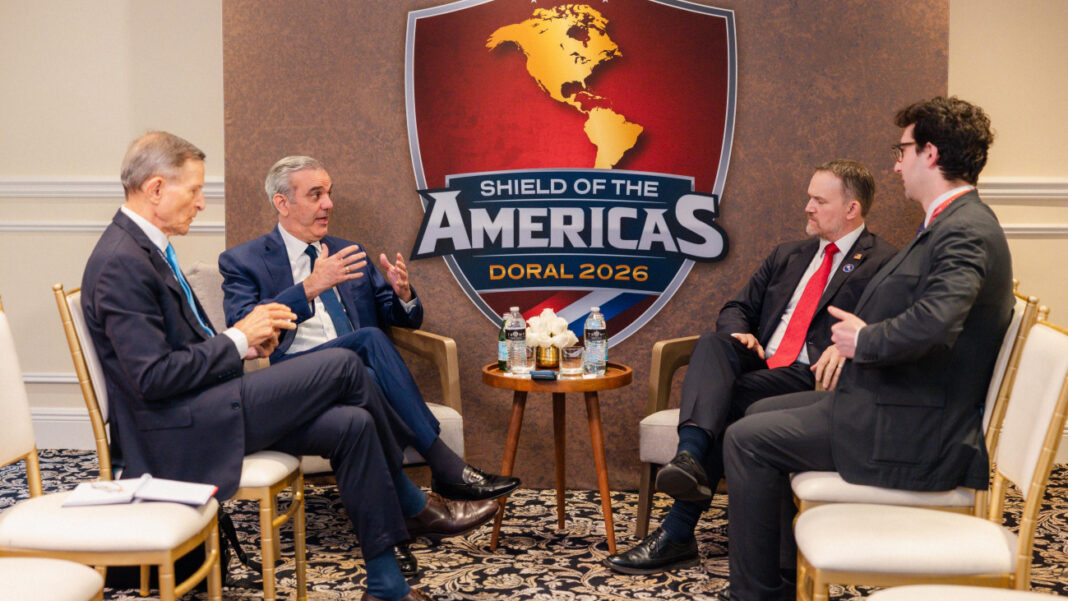 La reunión se desarrolló como parte de la agenda oficial del presidente Abinader durante su participación en la cumbre “Escudo de las Américas”, un encuentro de alto nivel que reúne a líderes del hemisferio con el propósito de fortalecer la cooperación regional frente a desafíos comunes.